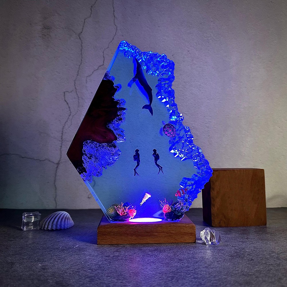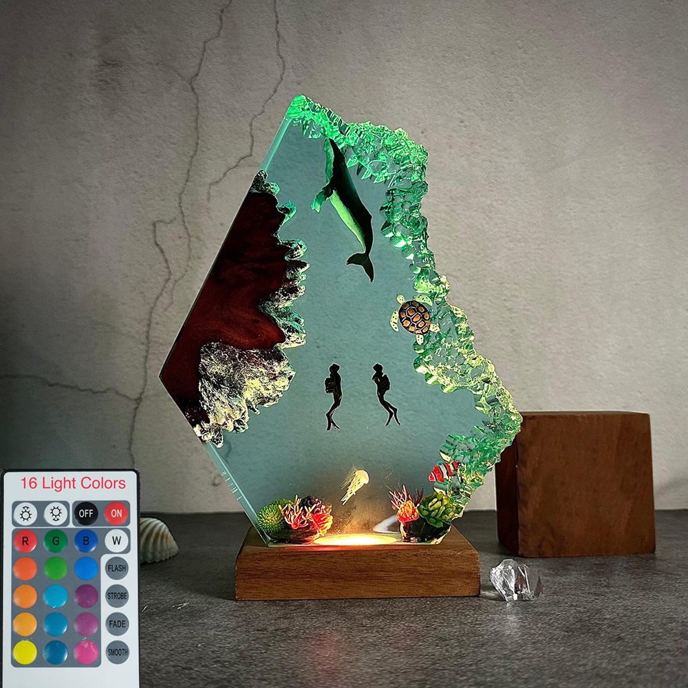 Holzlampe mit Buckelwal- und Tauchermotiv – Weihnachtsgeschenk, Valentinstagsgeschenk