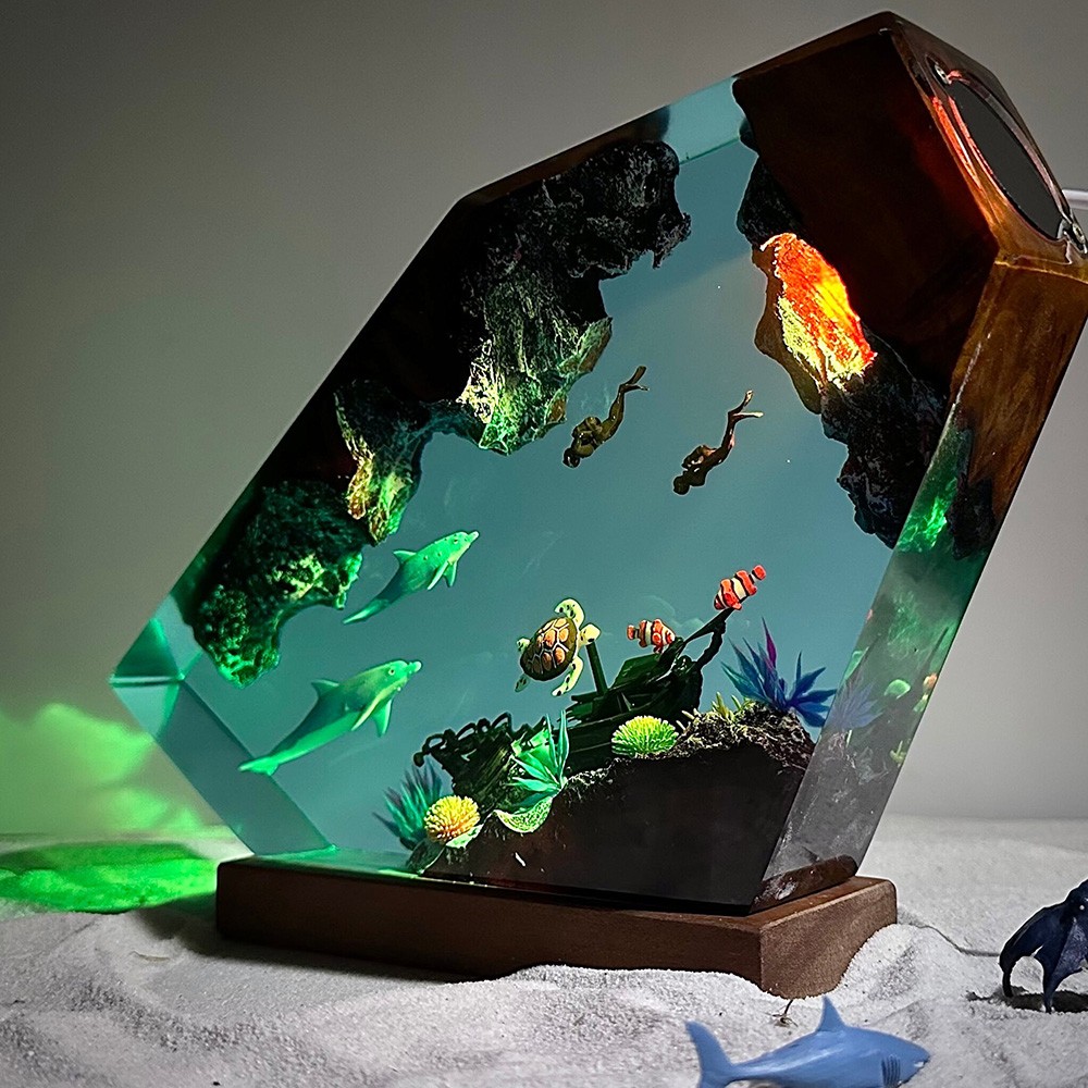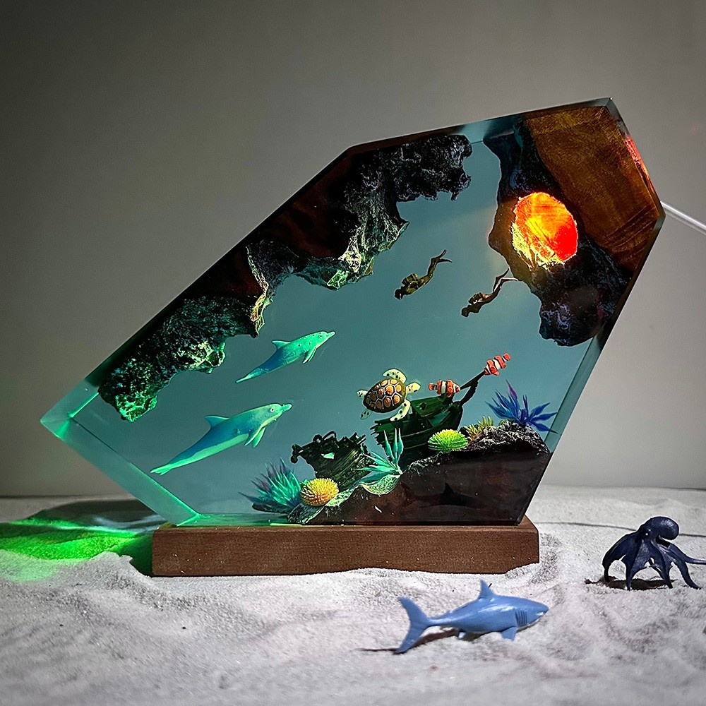 Nachtlicht aus Kunstharz mit Delfin und Schildkröte