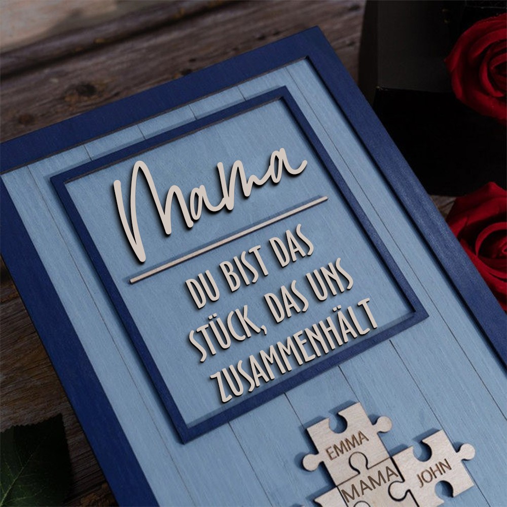 Personalisierte Muttertag Puzzle Zeichen | Mama Du bist das Stück, das uns zusammenhält | Muttertag Geschenk