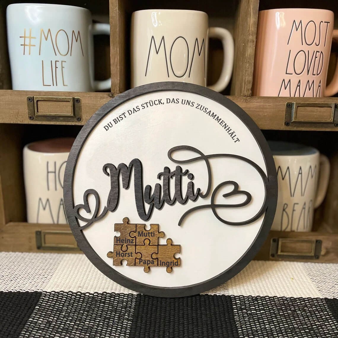 Personalisierte Muttertag Puzzle Zeichen | Mama Du bist das Stück, das uns zusammenhält | Muttertag Geschenk
