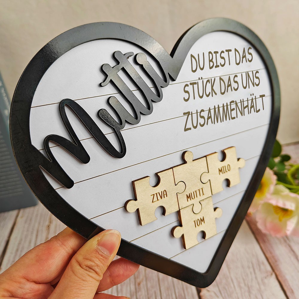 Personalisierte Muttertag Puzzle Zeichen | Mama Du bist das Stück, das uns zusammenhält | Muttertag Geschenk