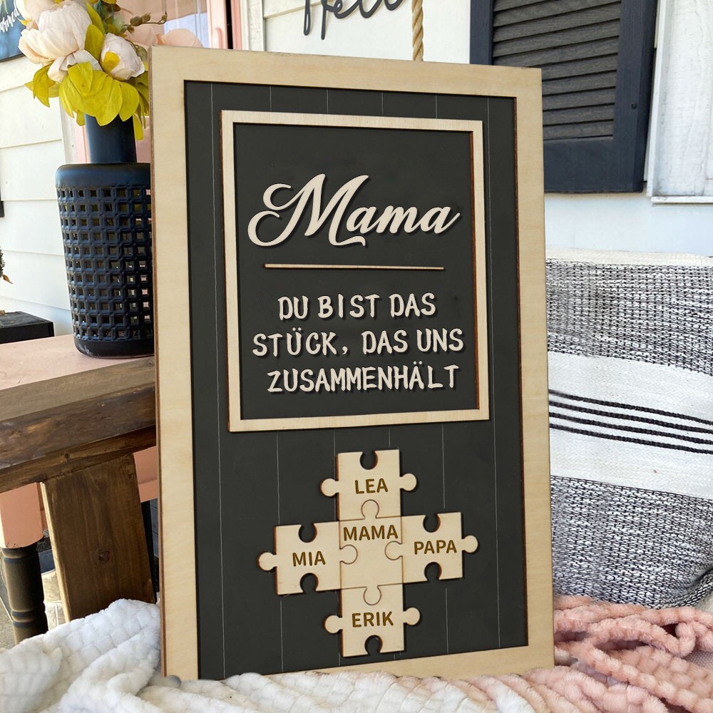 Personalisierte Muttertag Puzzle Zeichen | Mama Du bist das Stück, das uns zusammenhält | Muttertag Geschenk